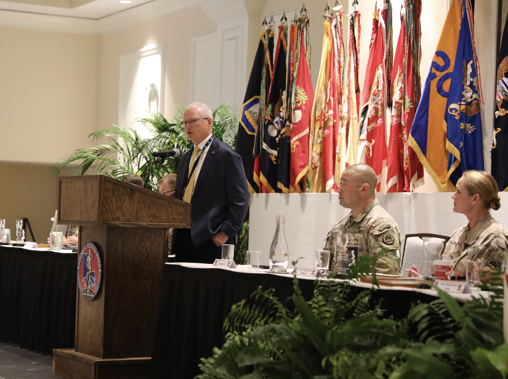 The retirees and company-grade officers participate in separate luncheon events immediately following the main business session on Saturday. Each session will have separate guest speakers or a discussion tailored to those groups. Your company name and icon will be displayed at the entrance and throughout the venue, announced periodically during the event, and featured on the State Conference webpage. Sponsors at the Silver level and above are also invited to attend one or more of these events focused on career/employment opportunities.